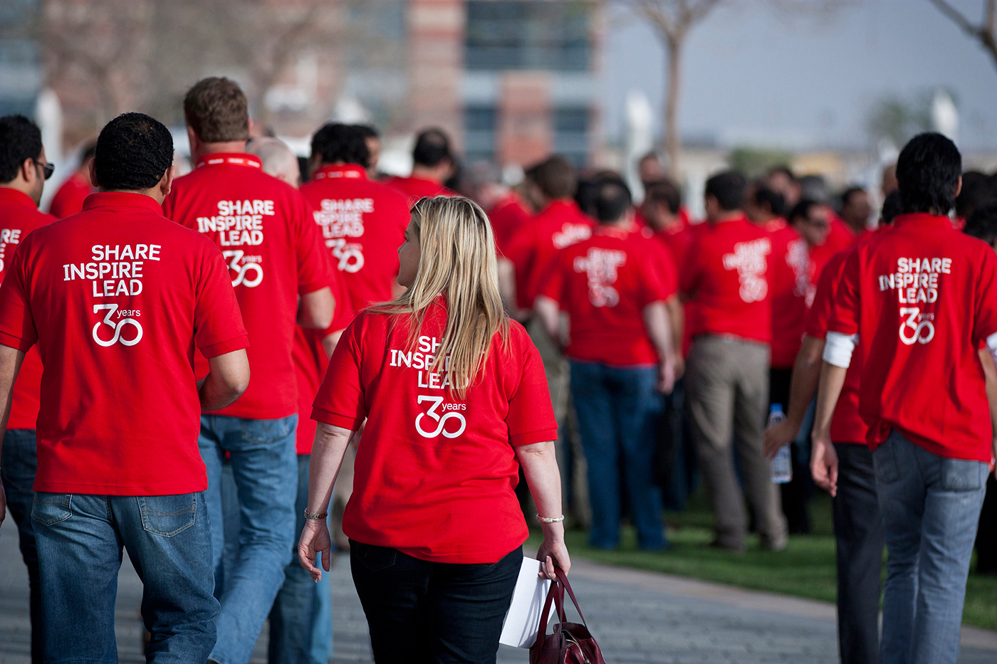 While I usually get the opportunity to design all aspects of the Aramex Annual Leader Conference, the year 2012 was extra special because it was Aramex’s 30th Anniversary. It was during this event that the founder, Fadi Ghandour, chose to announce his retirement and passed the torch to his successor Hussain Hashem